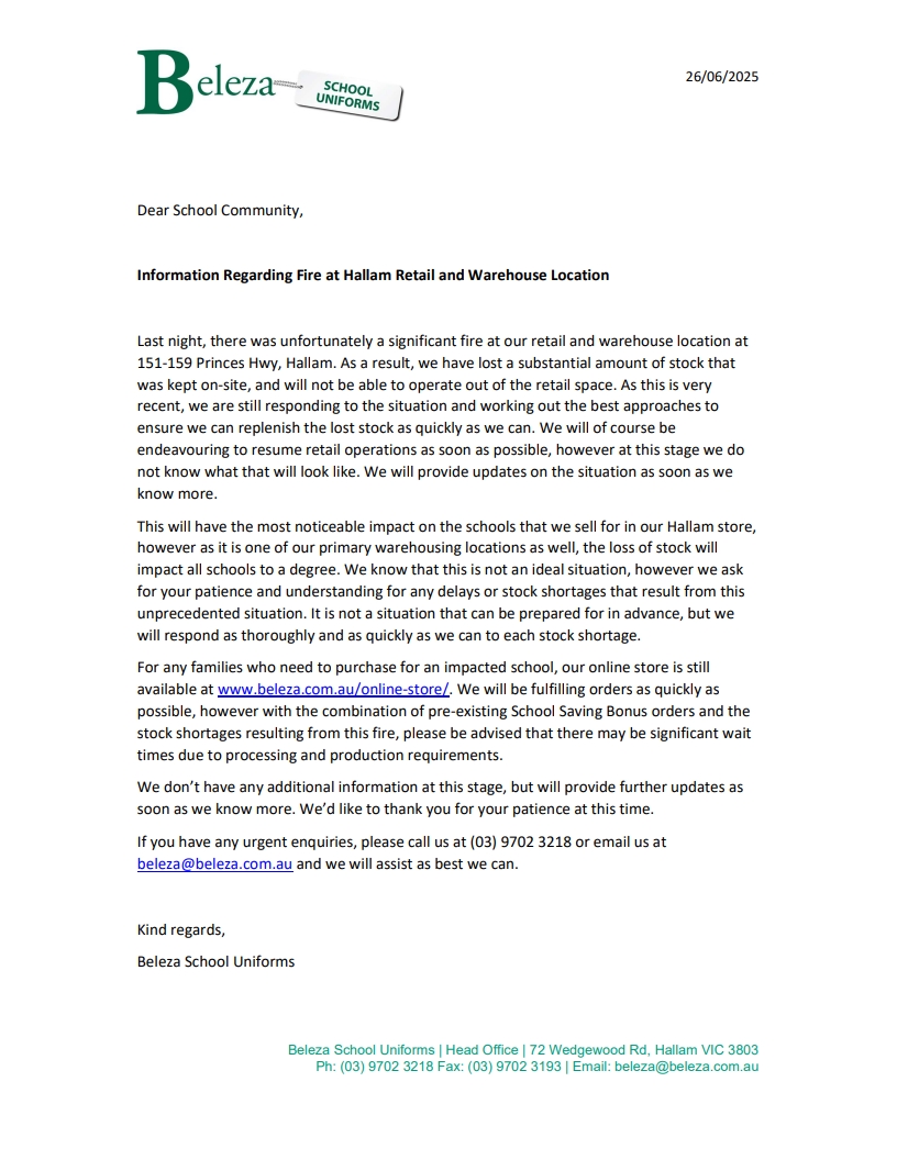 Please note, our school cannot provide copies of CCTV footage to staff, students or parents The Department must be contacted where these requests are made. Please refer to the Department’s CCTV Policy.