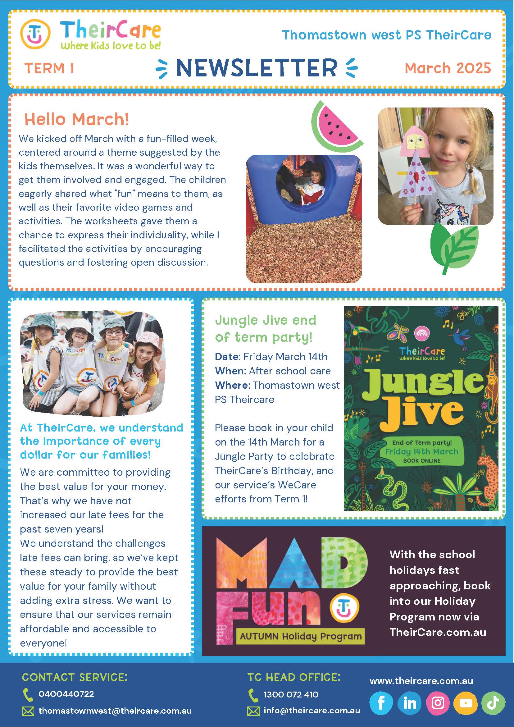 After School Hours Care - TheirCare UPDATE Please note: During holiday care, many schools in Thomastown and Lalor already utilise our TheirCare program. When needed, TheirCare Reservoir West PS will arrange transport for their students to Thomastown West Primary School. ?TheirCare will continue to follow its policies and procedures to ensure high-quality after-school care for TWPS students. If you have any questions or concerns, please contact Sandi Young on 9465 4317. |