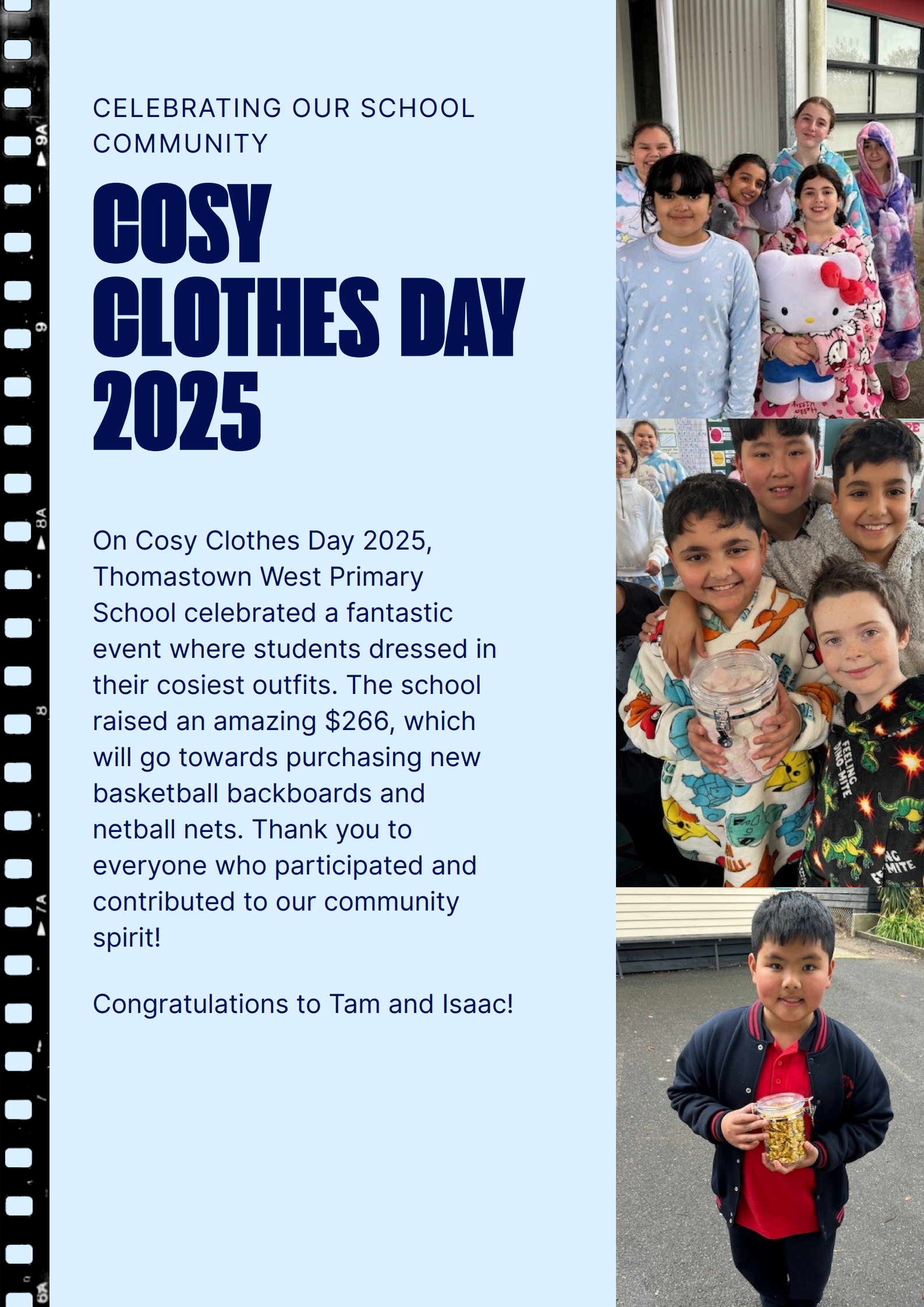 Thank you to all the students who participated in SRC’s Cosey Clothes Day and brought a gold coin donation. Congratulations to our SRC leadership team who raised $266.00 to fund additional sports equipment for play times. We look forward to seeing what equipment is selected by SRC, purchased and used next term! Enjoy the photos later in the newsletter.