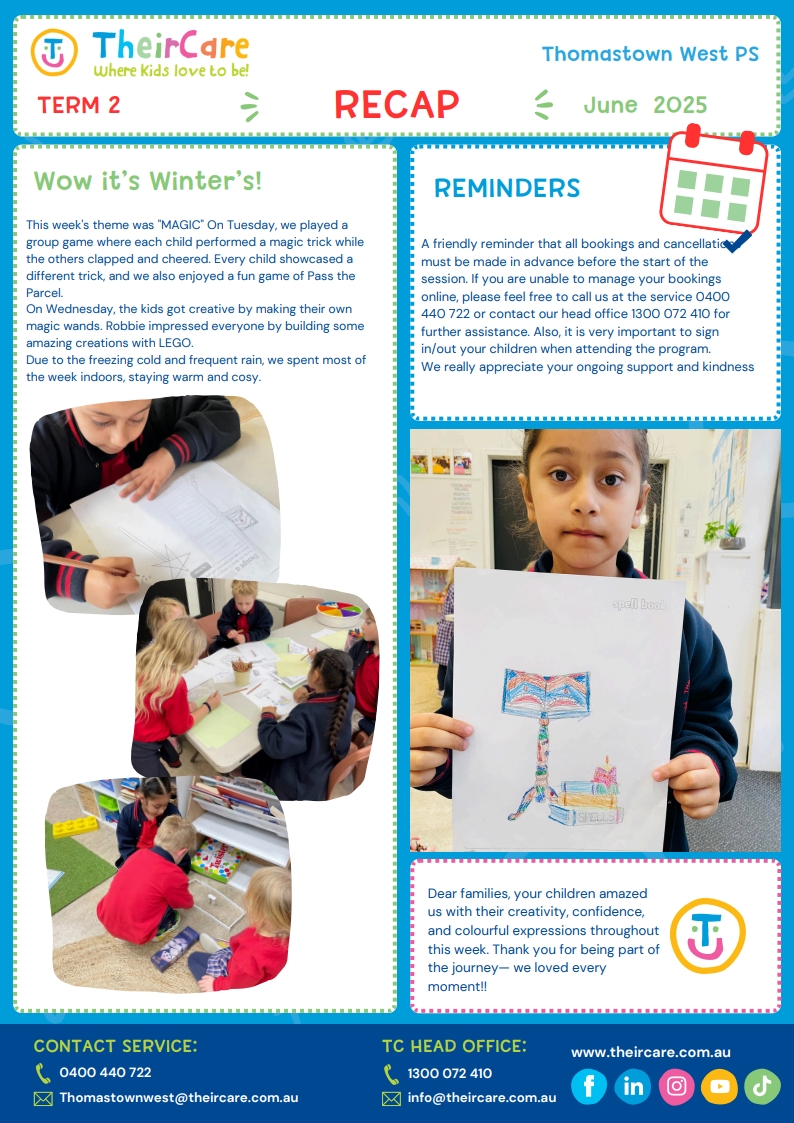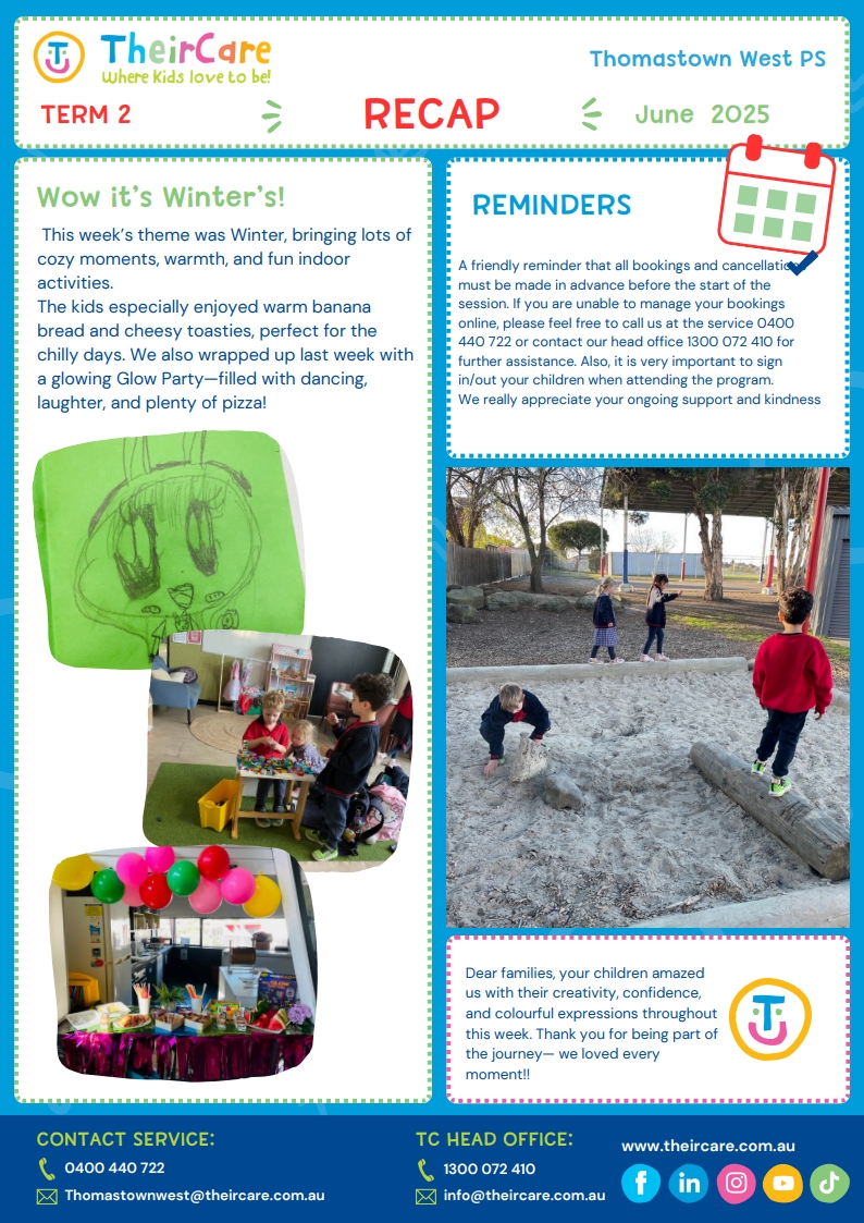 Term two and semester one have almost come to an end and this is our last Newsletter for the term. A heartfelt thank you to our Assistant Principal, James Crotti and Acting Learning Specialist, Tiz Rocca for stepping up into new roles while I was away overseas and during my leave next week. Their leadership, reliability, and willingness to go above and beyond have not gone unnoticed. I truly appreciate their support and the way the TWPS team worked together effectively to ensure things continued to run smoothly in my absence. (James will be Acting Principal and Tiz, Acting Assistant Principal while I am on long-service-leave during the last week of this term).