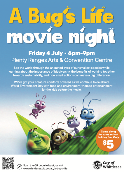 Celebrate World Environment Day with a family-friendly screening of A Bug’s Life and fun activities from 6pm, including a butterfly enclosure, crafts, and treats. Tickets are $5—book now via City of Whittlesea’s A Bug’s Life Movie Night at PRACC.