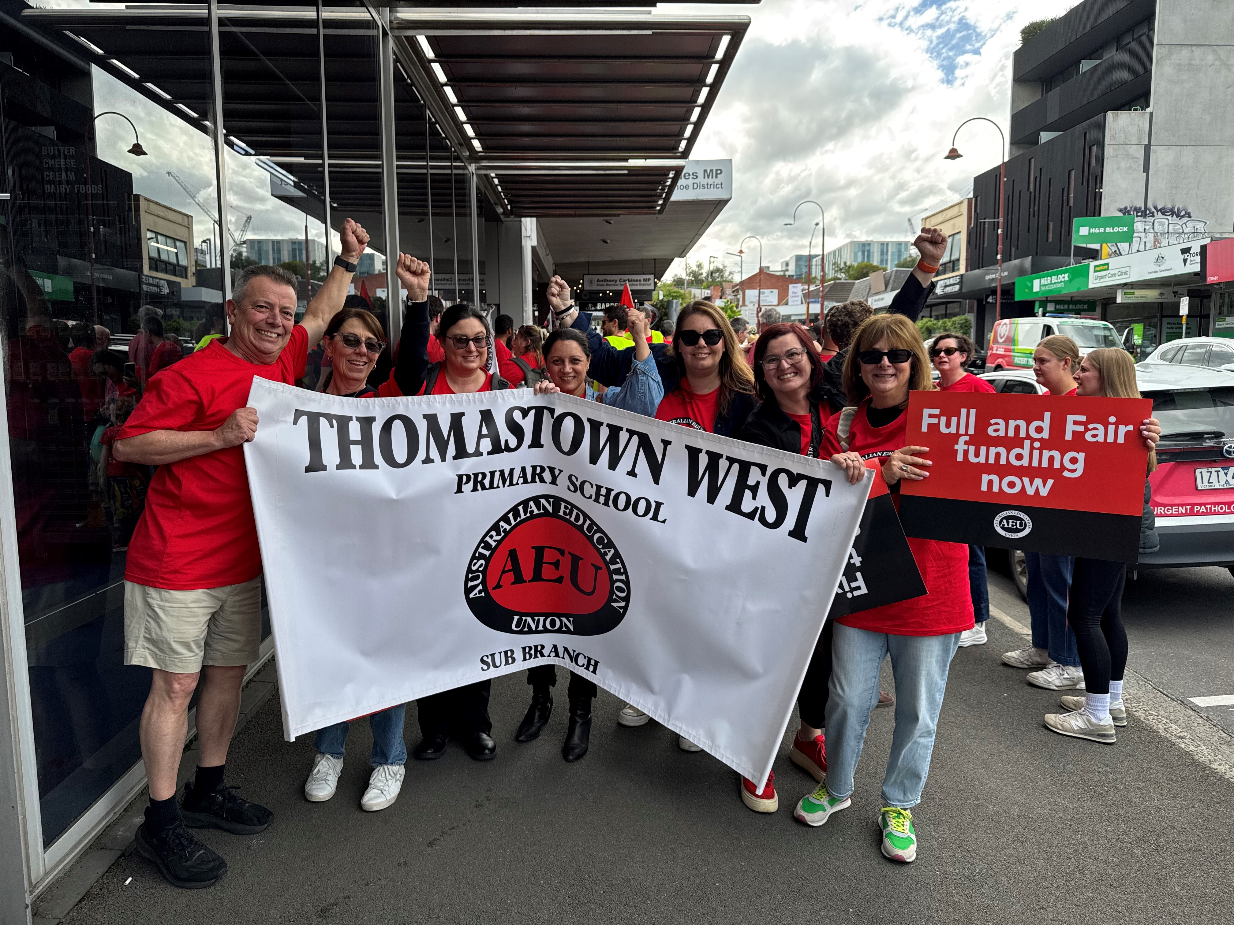 Staff from the Thomastown West Primary School sub-branch attended the AEU rally in Heidelberg after school on Wednesday to show their support for the full funding of public schools in Victoria. It was a great opportunity to stand alongside educators from across the region, advocating for the resources and support all students deserve to thrive.