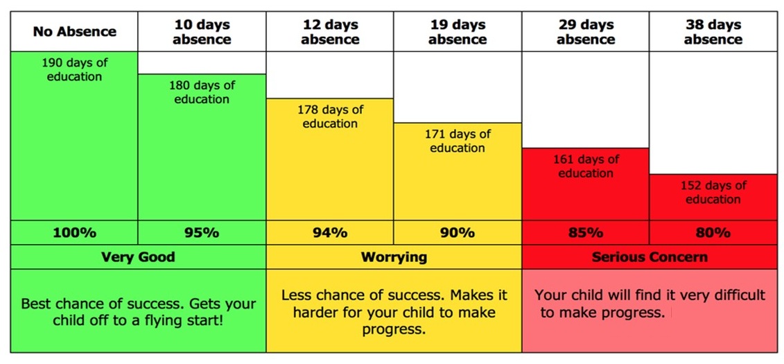 Regular school attendance will mean that your child has a better chance in life. Your child will achieve better when they go to school all day, every school day...