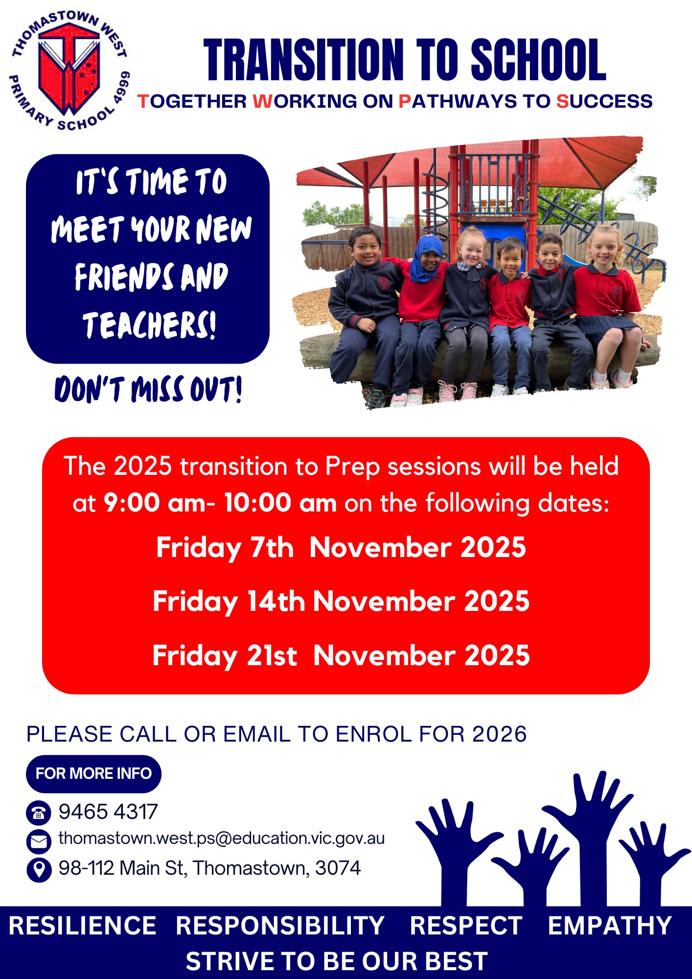 Please contact the school to let us know if your child/children will not be attending TWPS in 2026. Thank you to those families who have already done so.